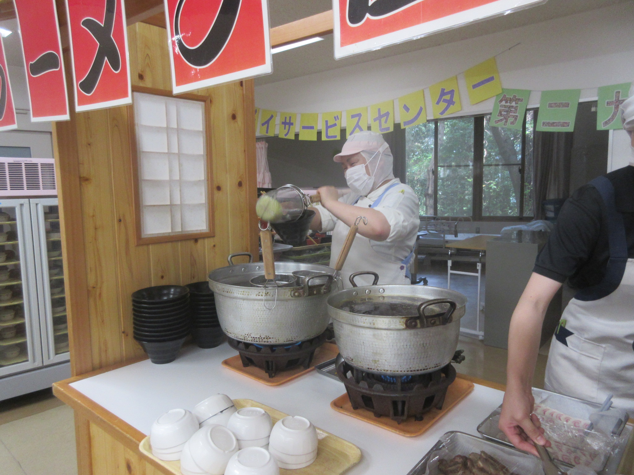 屋台から、醤油の香ばしい香りがデイフロアに広がっていきます。
