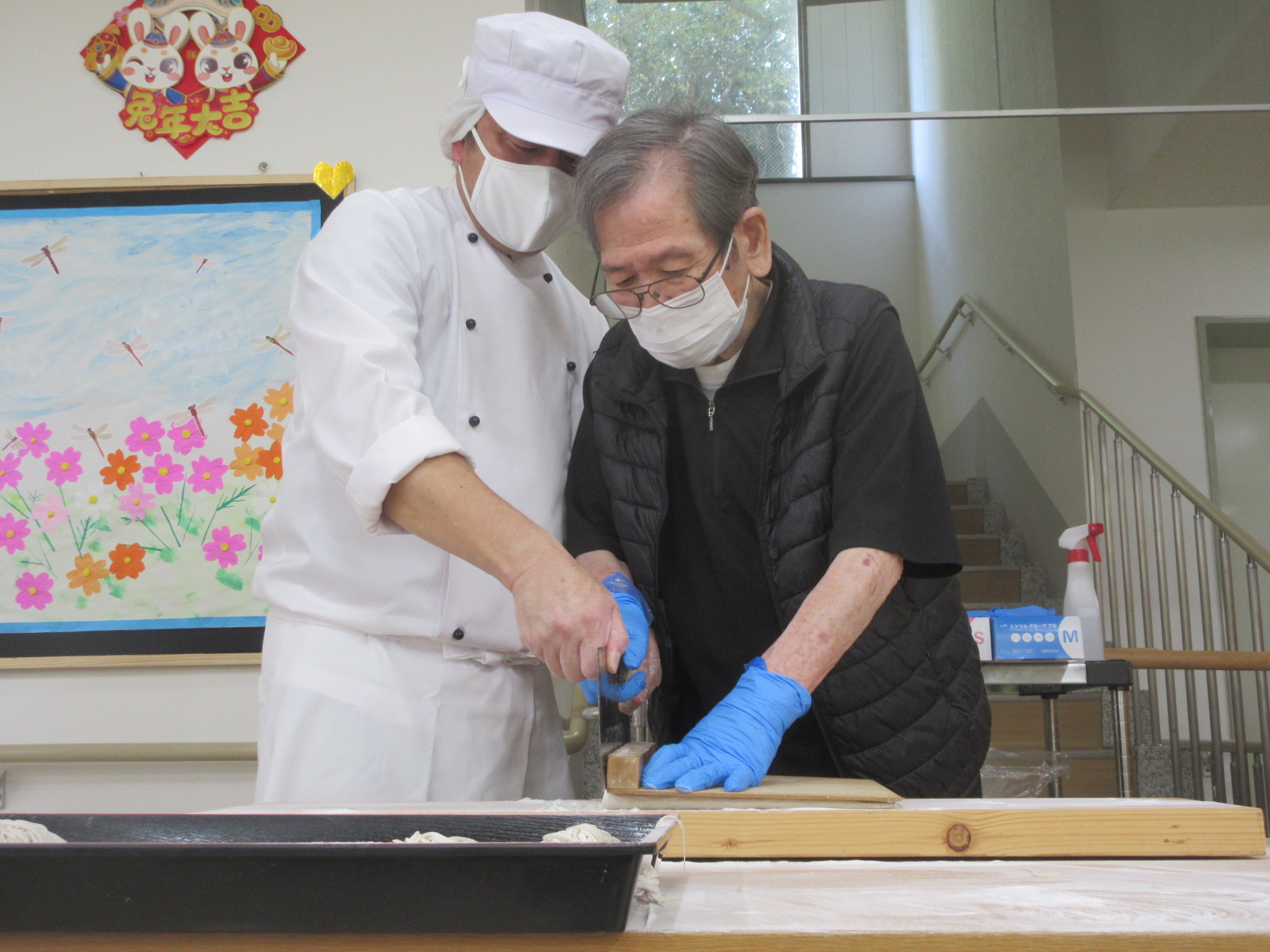 利用者さんも蕎麦を切る体験をし、緊張されながらも楽しく行いましたヽ(✿゚▽゚)ノ