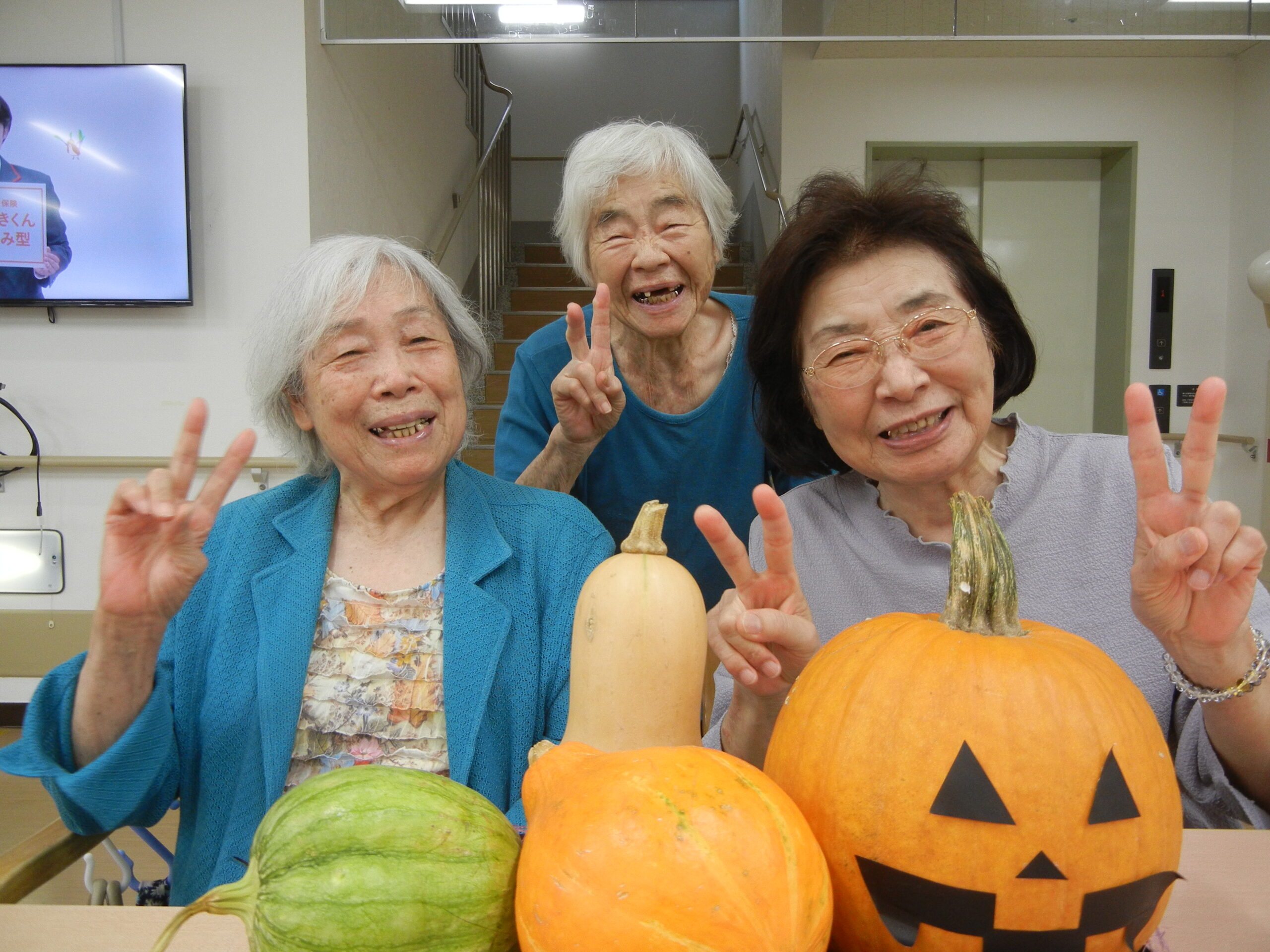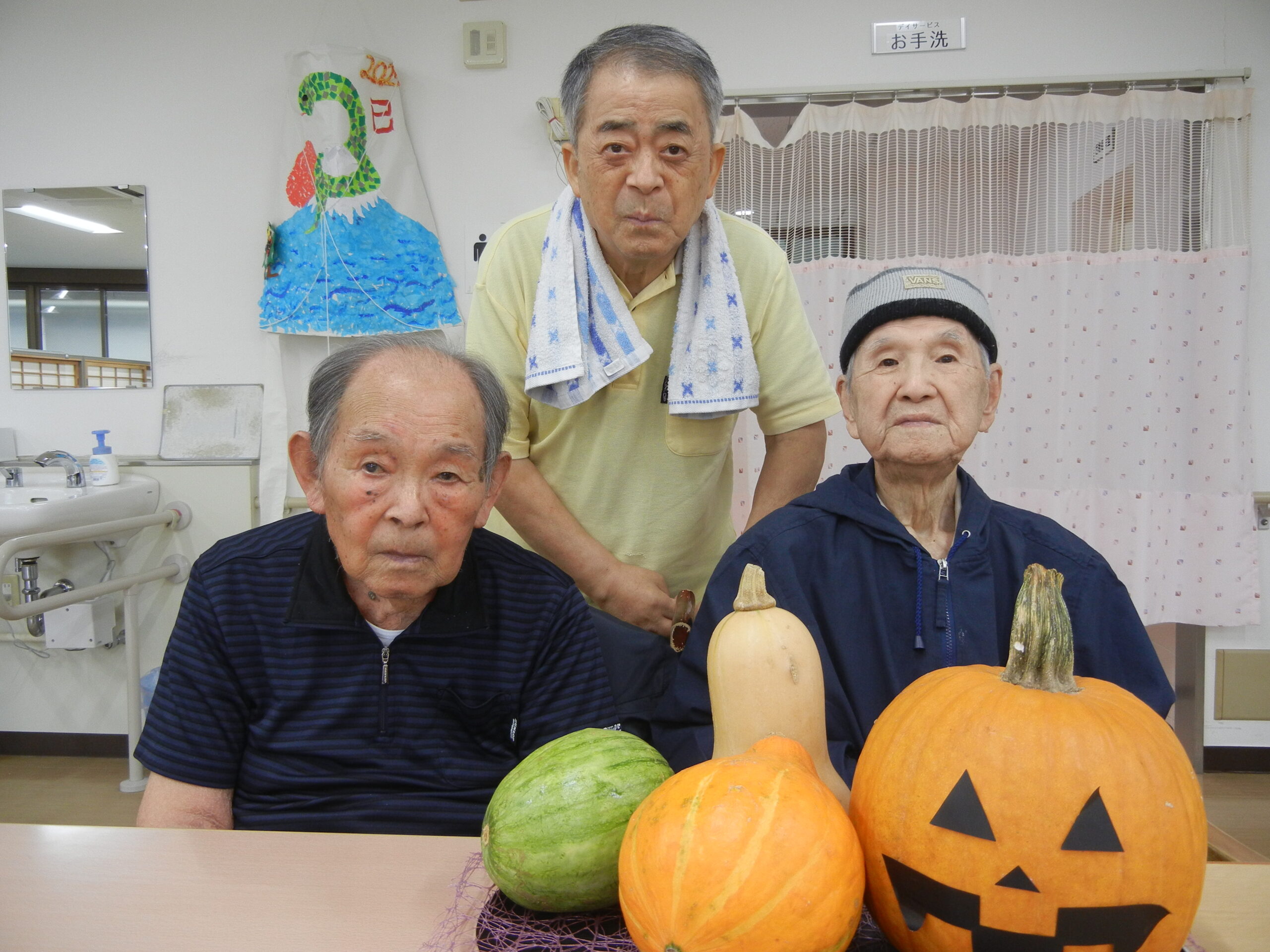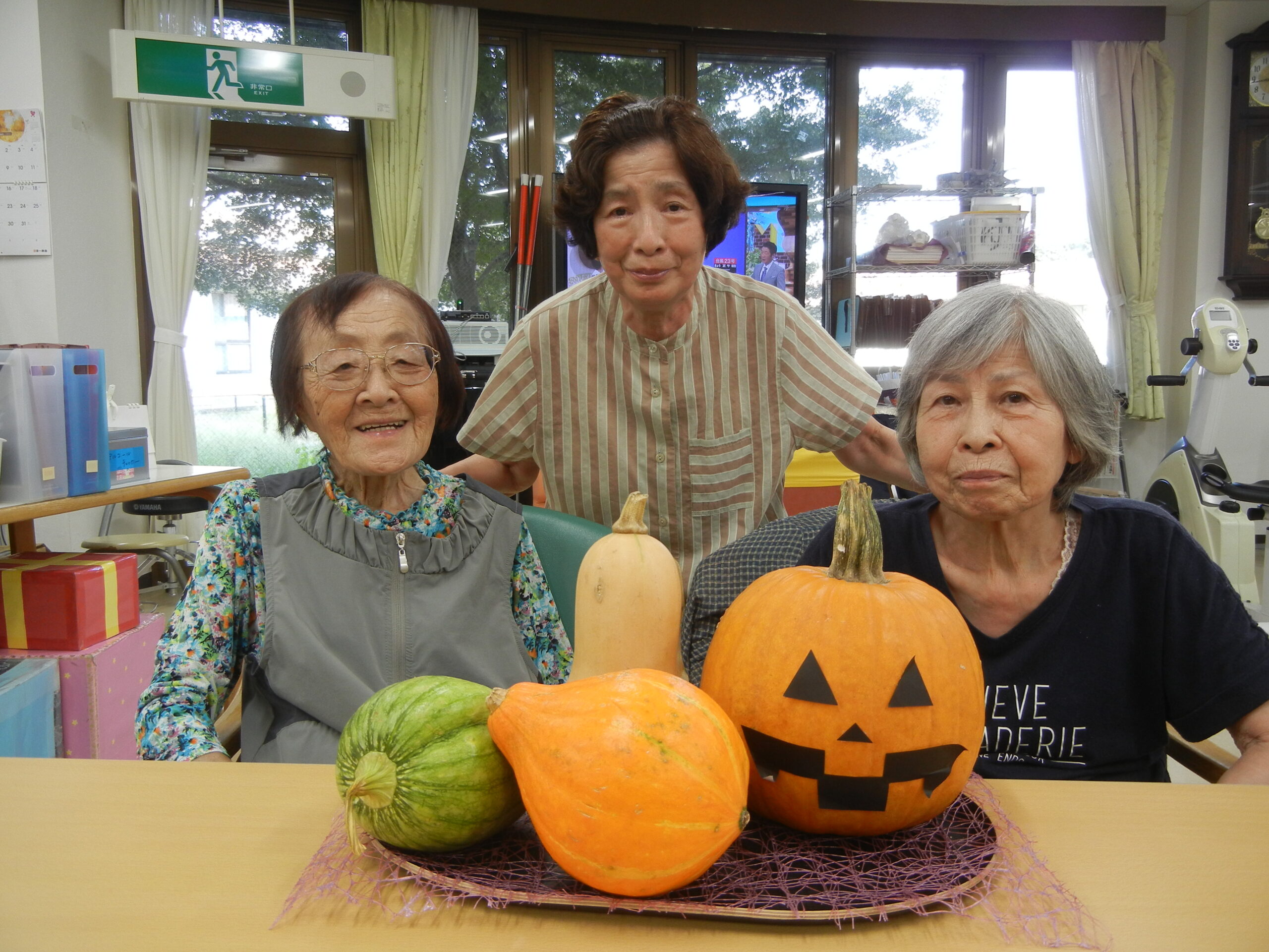 スタッフか持ってきてくれたカボチャに顔をつけて