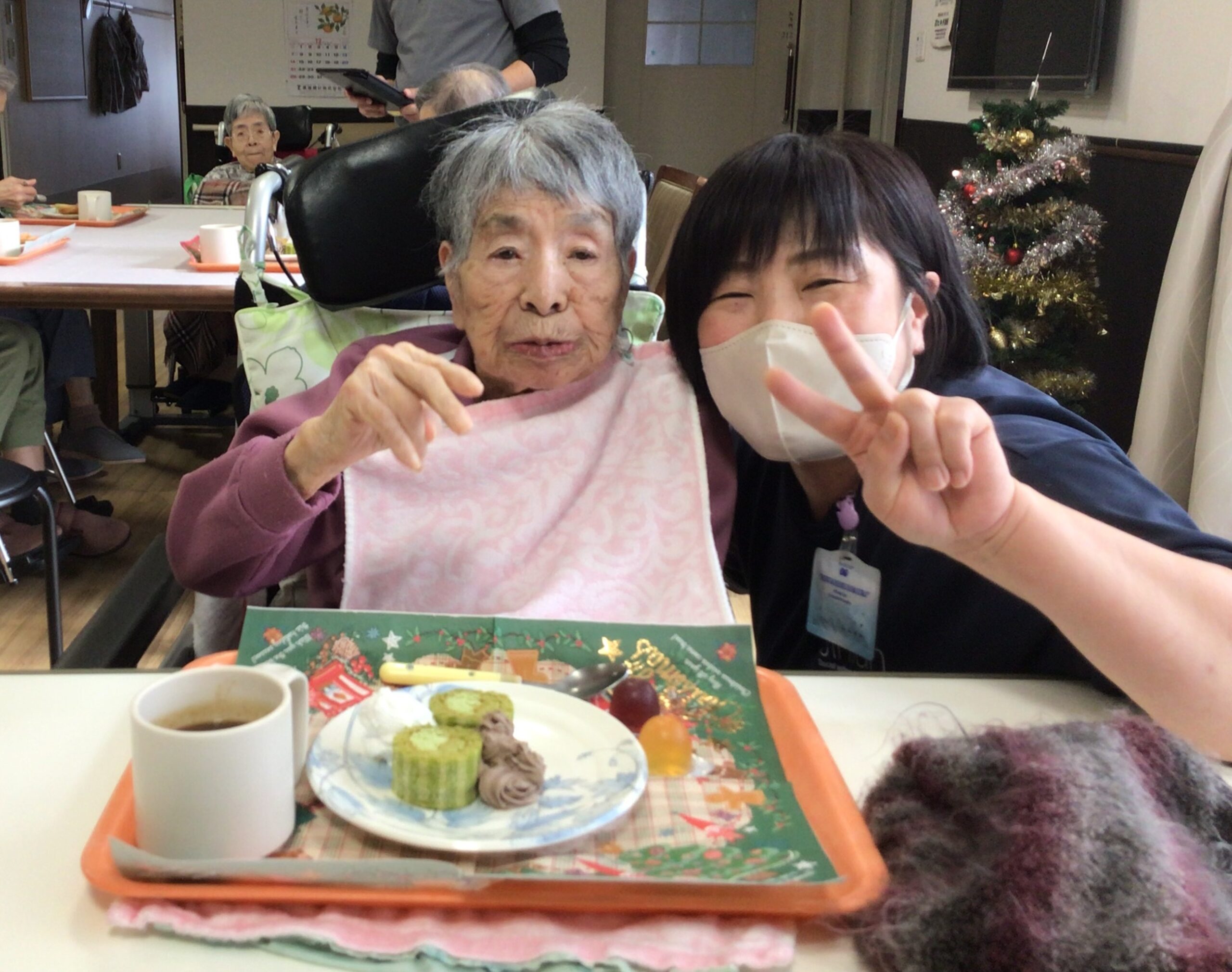 サンタさんとゲームした後はお菓子バイキングやケーキを楽しみました👏