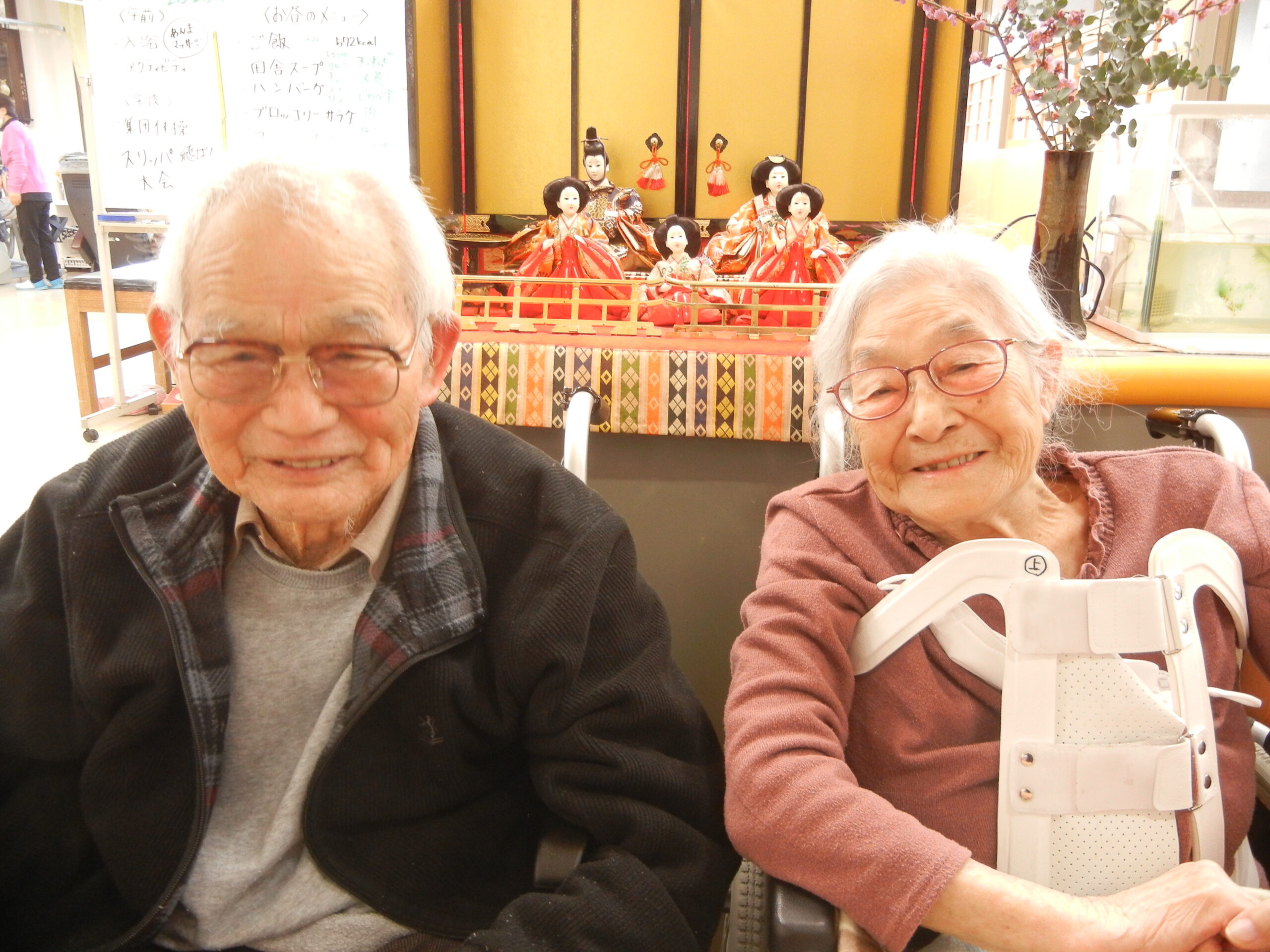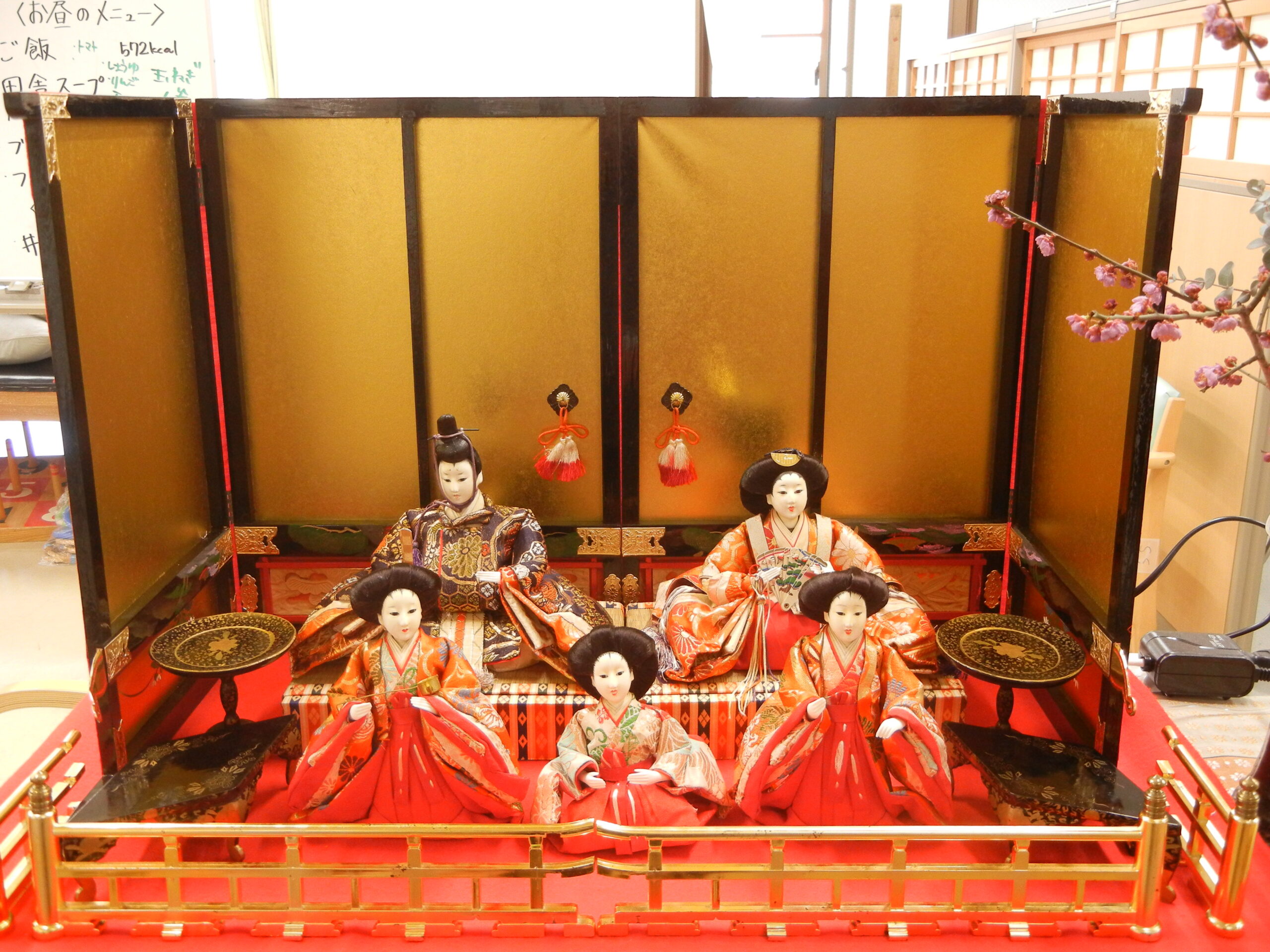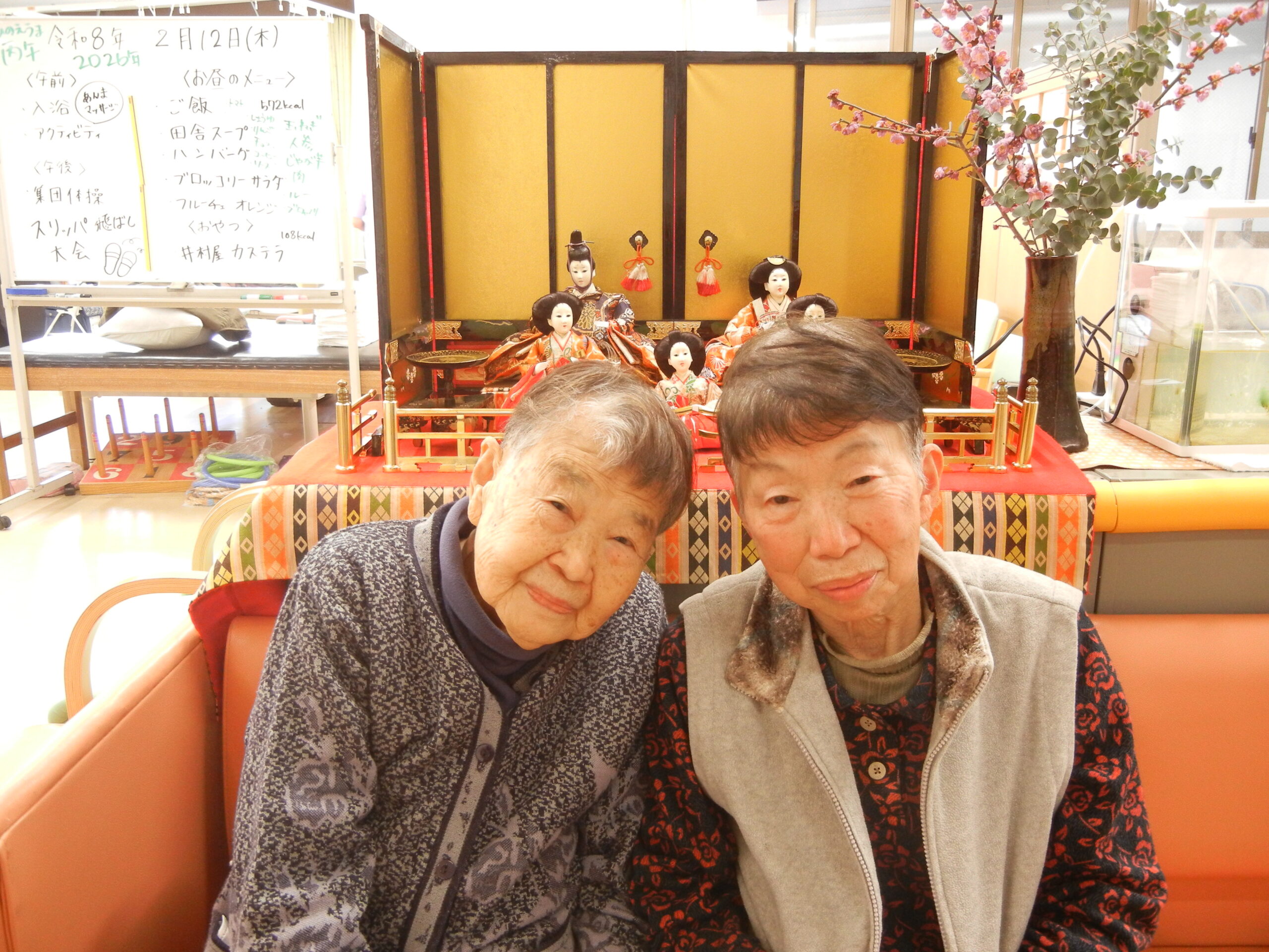 3月3日の桃の節句に向けて、デイサービスフロアに雛壇が登場しました。