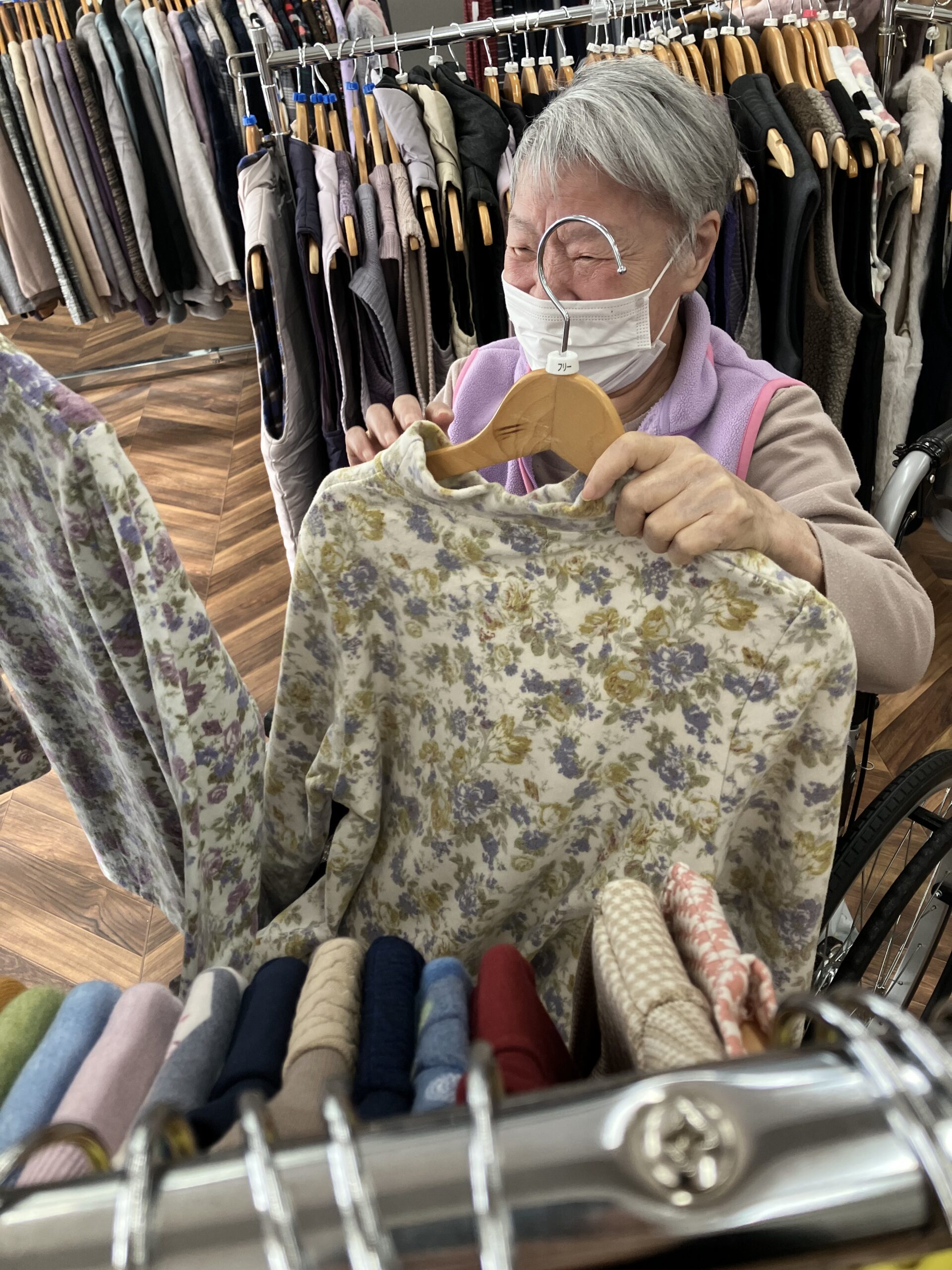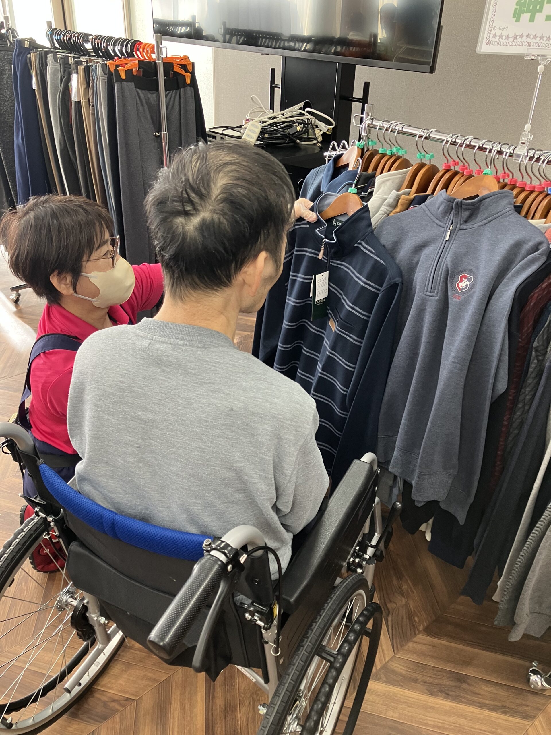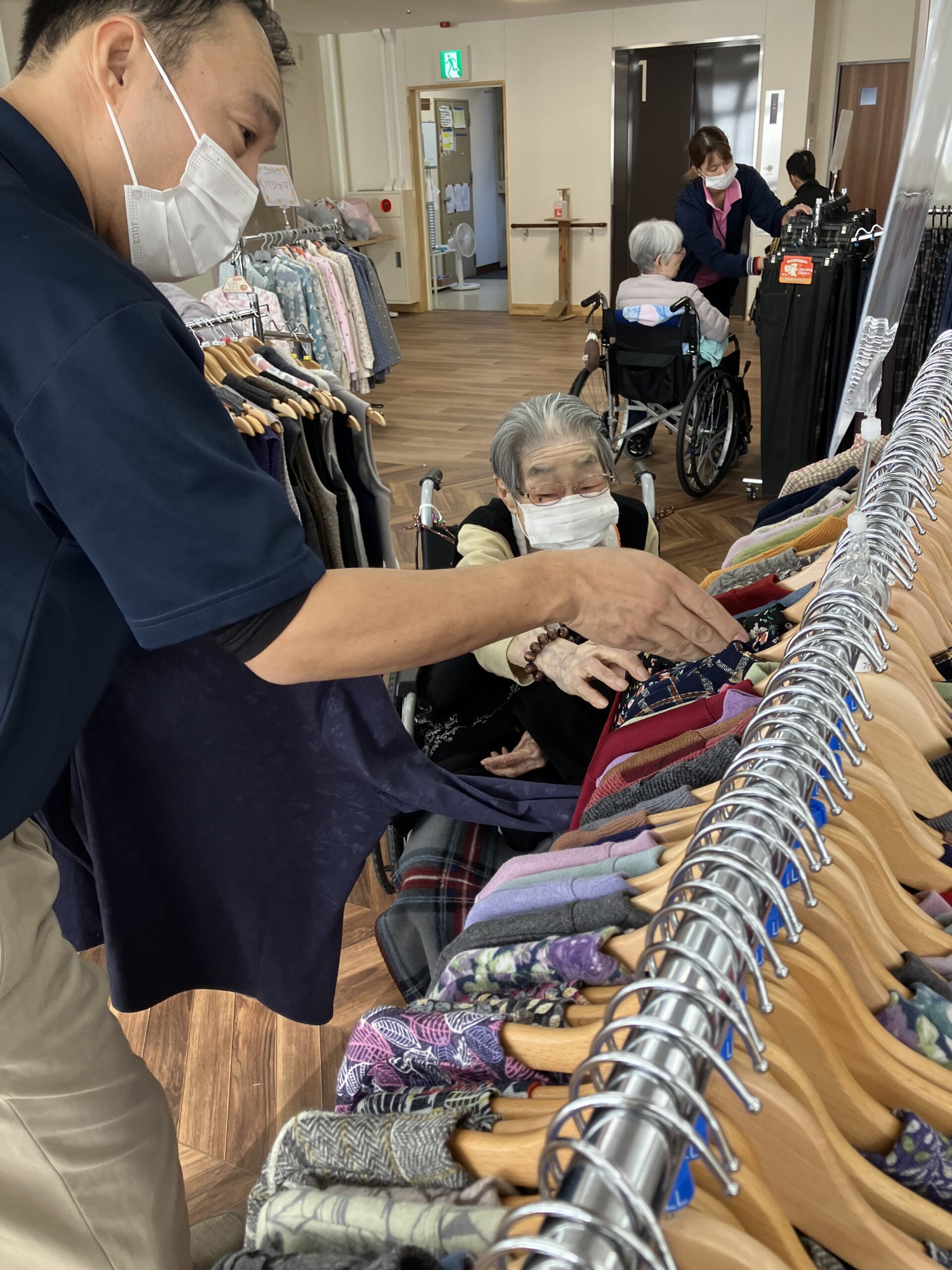 普段なかなか外出等の機会のない入所者の皆様にご自身で好みの衣類を選んでいただき、少しでも気分転換を図っていただこうと